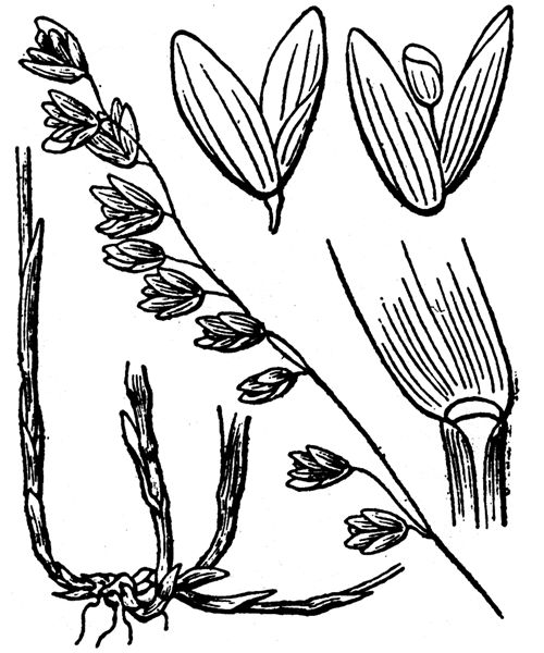 Épillets arrondis puis comprimés, à 2-4 fleurs, dont 1-2 inférieures fertiles et 1-2 supérieures rudimentaires réunies en massue ; glumes plus ou moins inégales, larges, mutiques, convexes et à 5-7 nervures sur le dos, égalant environ les fleurs ; glumelles inégales, l'inférieure coriace, convexe, plurinervée, entière, mutique ; la supérieure bicarénée et bidentée ; 3 étamines ; stigmates latéraux ; caryopse glabre, oblong, plan et sillonné sur la face interne.
