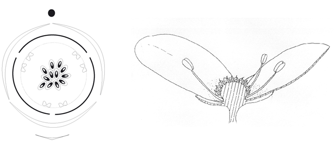 Diagramme et coupe de "Baldellia ranunculoides (L.) Parl."