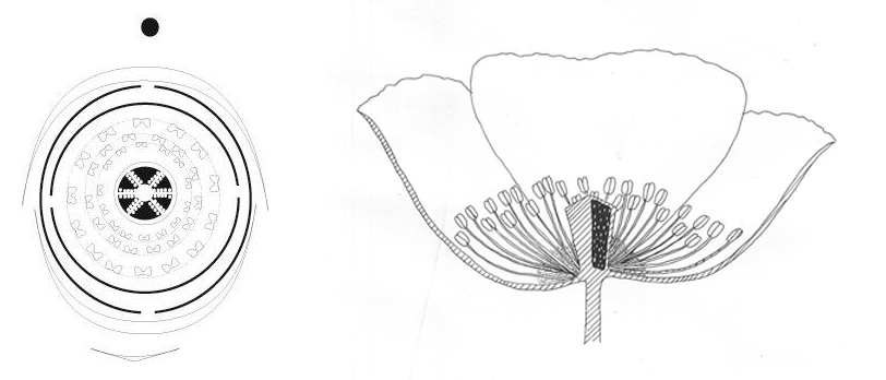 Diagramme et coupe de "Papaver rhoeas L."