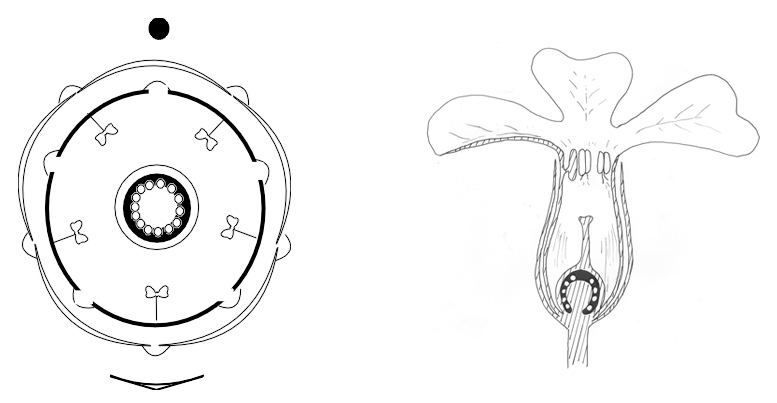 Diagramme et coupe de "Primula vulgaris".